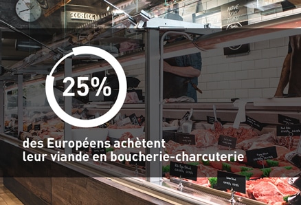 Meat consumption trends have changed dramatically in recent years. The numerous health crises linked to the sector have increased the mistrust of customers, who are looking for as much information as possible about the products they consume, whatever they may be. 58% of Europeans still buy their meat mainly in hypermarkets and supermarkets, but 25% go to butchers’ shops, and this figure is rising.