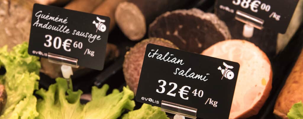 To stand out from the crowd, it is essential that butchers use price cards that clearly communicate their key selling points. Thus, they must convey a sense of freshness, taste and superior quality in a way that attracts passing buyers. Even if your goal is simply to sell the product at a reasonable price, successfully communicating the quality of the product (at your incredible price) can amplify sales and give the impression that your store is a great value.