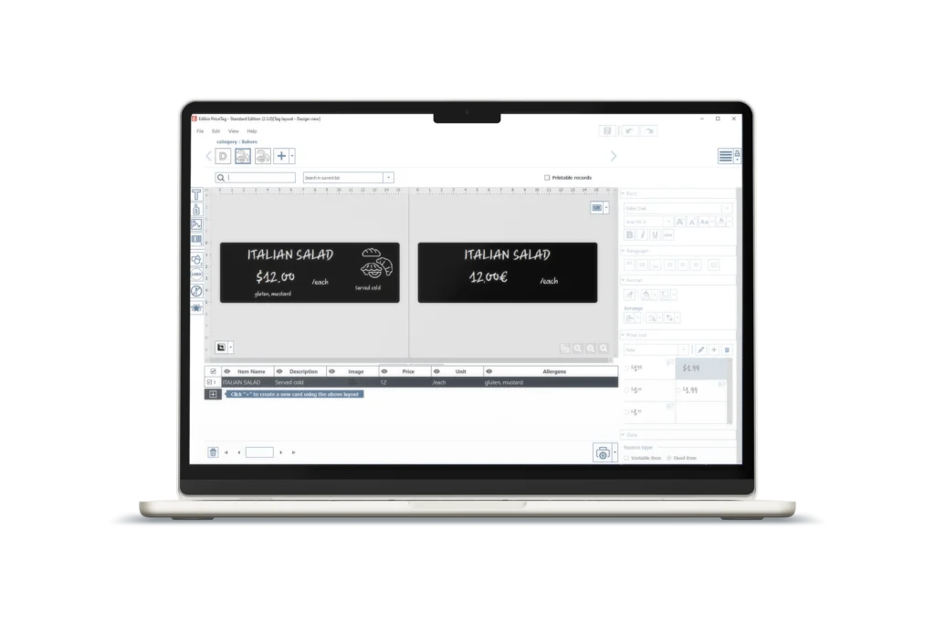 With Edikio Flex, you get access to the features of Edikio Price Tag “Standard Edition” software, compatible with Windows® and macOS.
