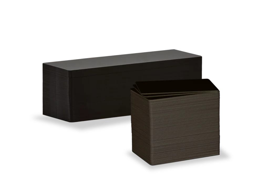 • Multiple card types: colored credit-card-size cards, matte black long cards (150 mm & 120 mm), tri-format cards