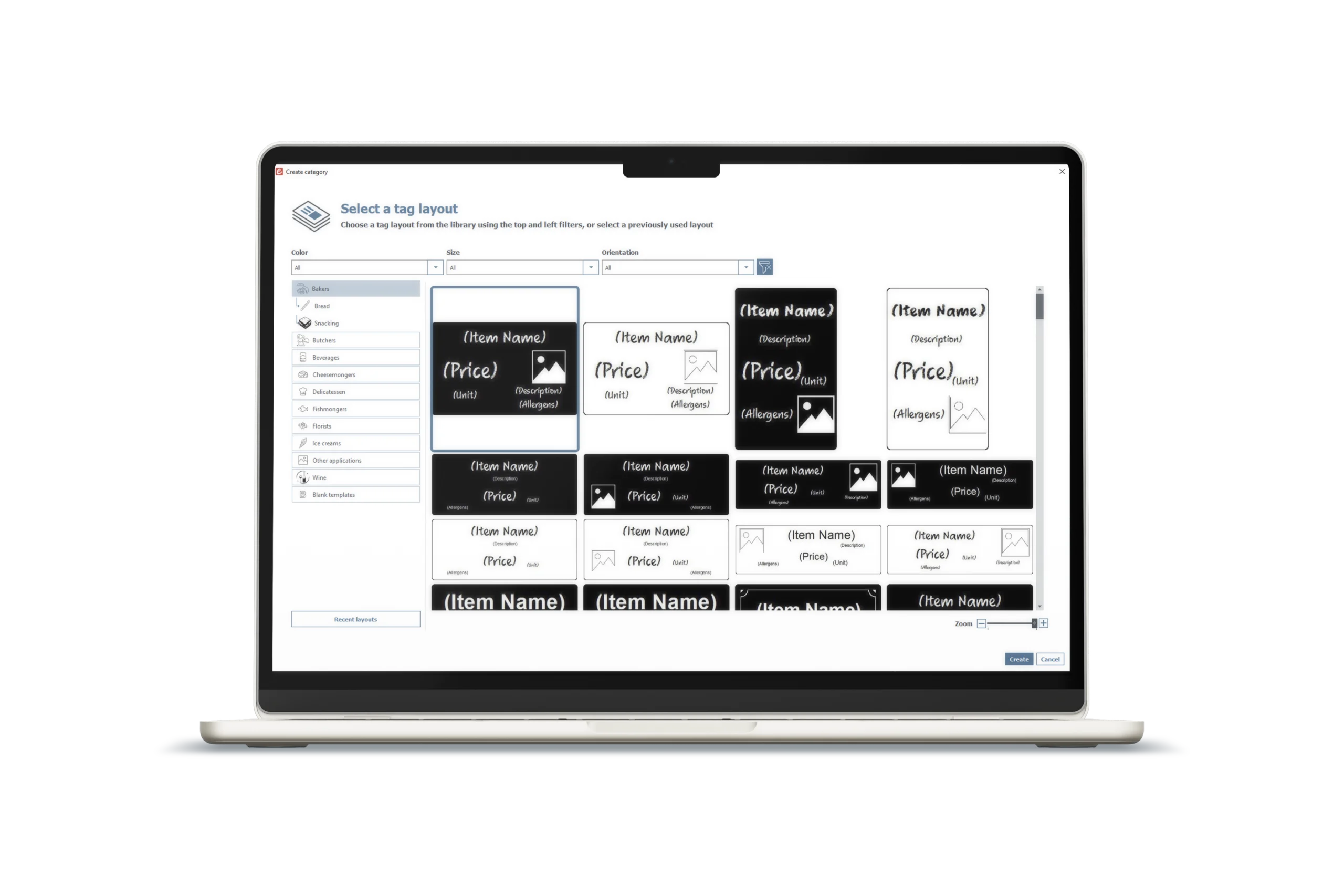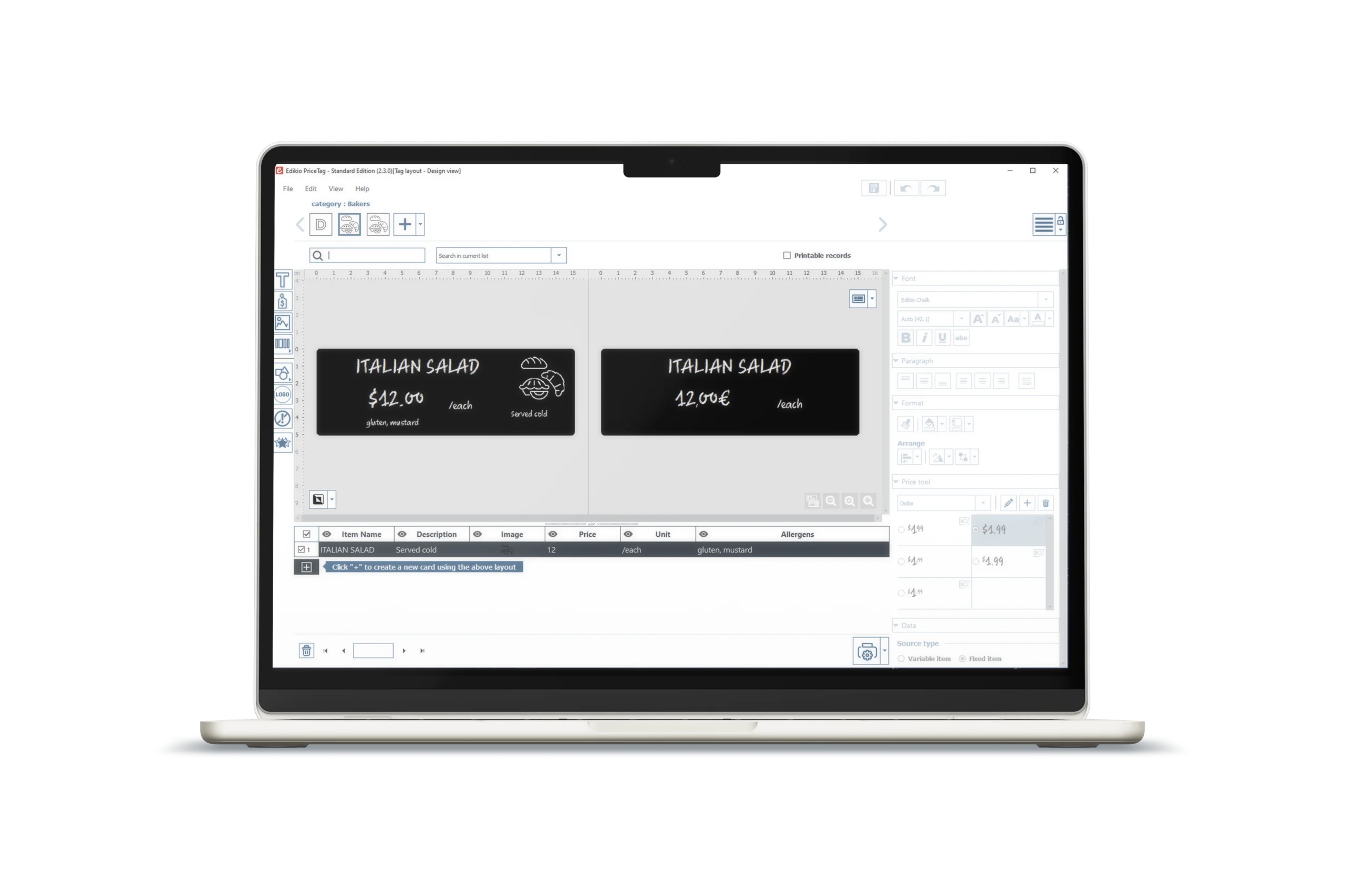 With Edikio Flex, you get access to the features of Edikio Price Tag “Standard Edition” software, compatible with Windows® and macOS.