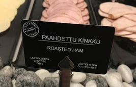 Every hotel now has around 70 labels on its breakfast buffet. They are displayed harmoniously, legibly and in 3 languages – Finnish, English and Swedish: